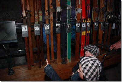 Mer skimuseum var det jo også, guttene titter på hvordan man hoppet på ski i gamle dager, og så rare ski de hadde da…