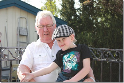 Ørjan koser seg på fanget til Bestefar. Han er veldig glad i å sitte der!